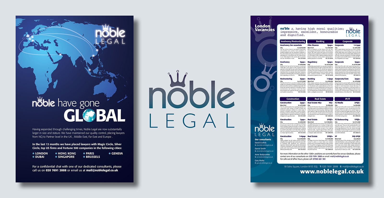 Noble Legal is a legal recruitment consultancy handling NQ to Partner level hires for leading law firms and blue chip corporations in London and Internationally.
